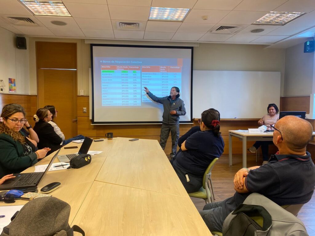 Recientemente, la directiva del Sindicato Alberto Hurtado Cruchaga (SAHC), comenzó una serie de reuniones con socios y socias visitando los distintos campus de la PUCV para socializar el nuevo Contrato Colectivo 2025-2027 y también para responder dudas o consultas en relación a este documento, el que se aprobó por una amplia mayoría del 86% a fines de septiembre y entró en vigencia a partir de octubre.